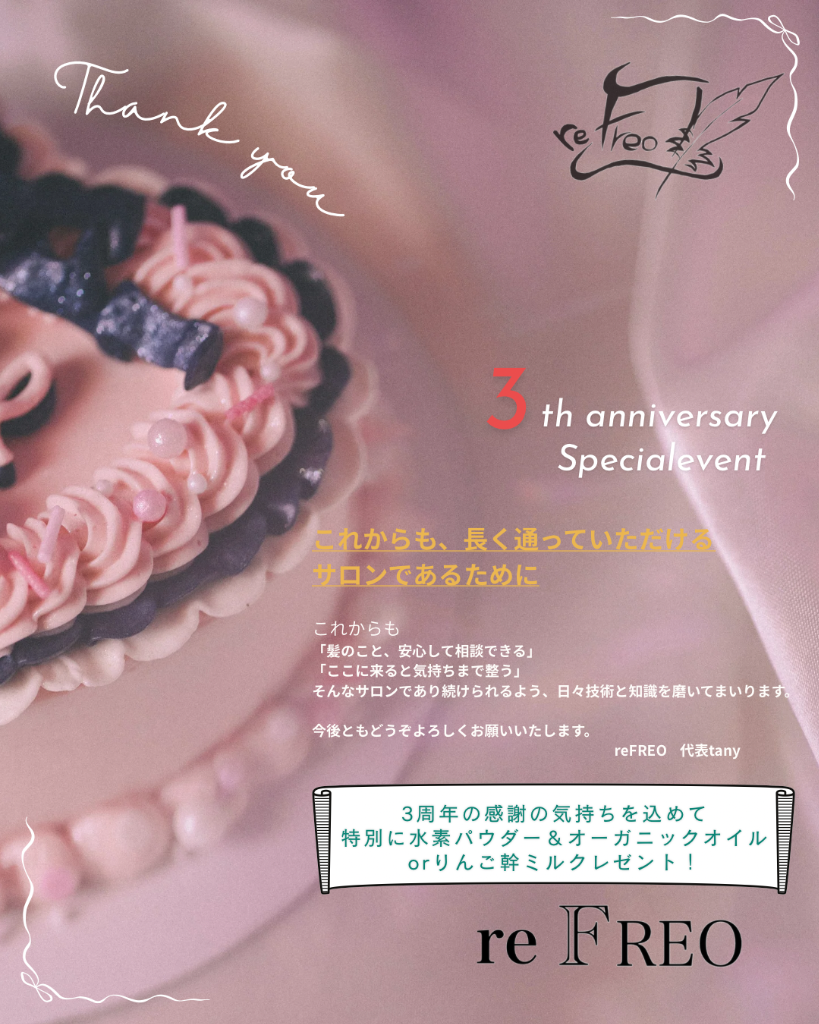 reFREOではダメージレス施術、髪質改善、酸性ストレートに力を入れ、10年先まで綺麗な髪をキープできるようにしているヘアサロンです!